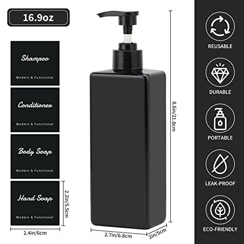 Segus 500ml Distributore di Sapone Nero, Bottiglie a Pompa dal Design Minimale, 3 Pezzi Flaconi Ricaricabili con Etichetta Adesiva Impermeabile, Accessori per la Casa Bagno Pratici ed Eleganti