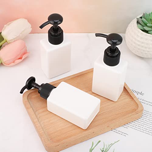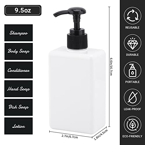 Segus Quadrata Dosatori per Sapone Liquido 280ml 3 Pezzi, Bottiglia a Pompa con Etichetta Impermeabile, Flacone Shampoo Ricaricabile, Dispenser Bianco per Doccia Portatili per Hotel, Bagno, Viaggi
