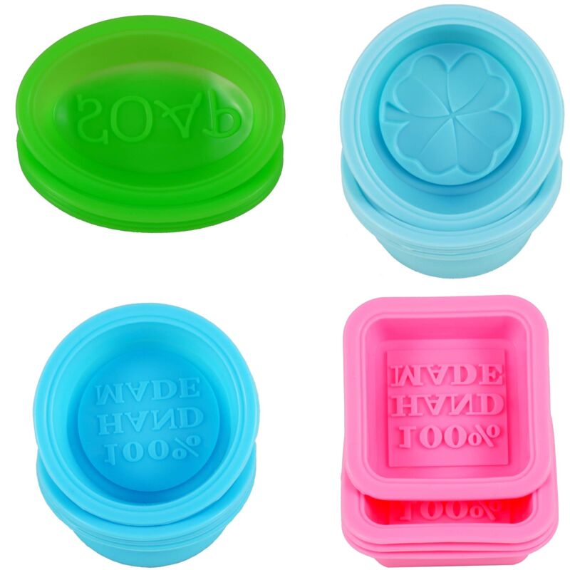 Consigli: Si prega di lavare gli stampi con acqua prima dell'uso. Dettagli: Stampi in silicone per creare sapone fatto a mano. Anche per molte altre possibilità di utilizzo, come cupcake, gelatine, dolci, dessert, cioccolato, ghiaccio, ecc. Colore: azzurro, rosa, verde, blu. Qualità alimentare al 100% Temperatura di funzionamento: -40 - 230 gradi. Contenuto: 4 quadrati rosa fatti a mano. 4 fiori azzurri rotondi. 4 x blu fatti a mano rotondi. 4 saponi ovali verdi.