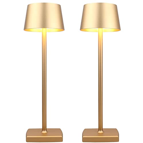 Seihoae Lampada da tavolo a LED senza fili ricaricabile, Lampada da tavolo alimentata a batteria 5200mAh, Lampada da comodino portatile USB piccola, Luce in metallo per ristorante, 2 pezzi d'oro