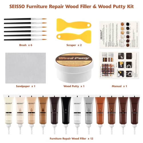 SEISSO Kit di riparazione per mobili in legno, stucchi per la riparazione di graffi con stucco per legno, kit di riparazione per pavimenti in laminato di legno duro, ripristina qualsiasi graffio