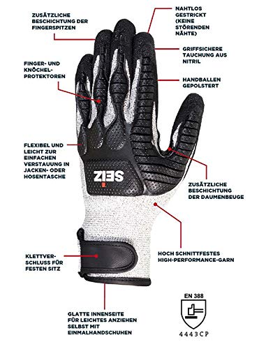 Seiz Luge 800270 - Guanti da Lavoro Universali, Taglia 10, Größe 11, Nero/Grigio, 1