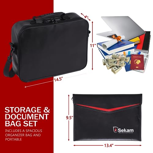 SEKAM - Borsa a prova di fuoco per documenti (36.8 x 27.9 x 10.2 cm) con borsa per denaro, a prova di fuoco per documenti, con serratura e organizer portatile per archiviazione, colore: nero