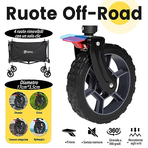 Sekey Carrello da Giardino con Tetto, XXL Carretto Pieghevole da trasporto 160L con Freno, Rosso