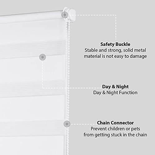 Sekey Tenda avvolgibile giorno notte senza foratura, 55 x 130 cm, colore: bianco con zebra di protezione solare, facile da installare con clip per finestra o porta