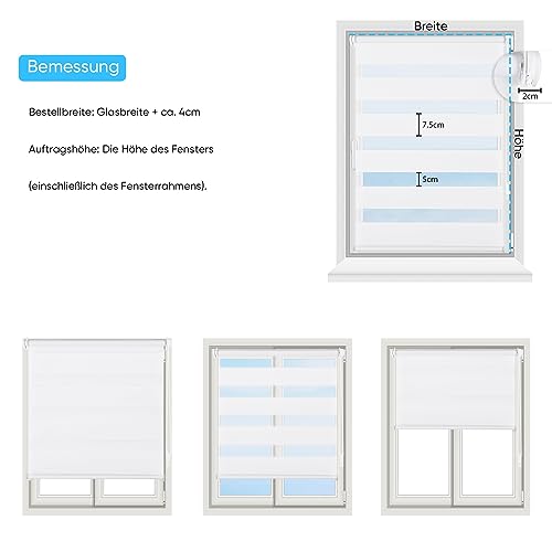Dimensioni: la larghezza delle tende è di circa 4 cm più corto rispetto alla larghezza ordinata. Si prega di misurare il vetro e la larghezza della finestra prima dell'acquisto. Larghezza = larghezza del vetro + circa 4-6 cm. Per esempio: per vetri da 76 cm, acquistare tapparelle larghe 80 cm. Si prega di notare che la larghezza dell'ordine non può superare la maniglia.