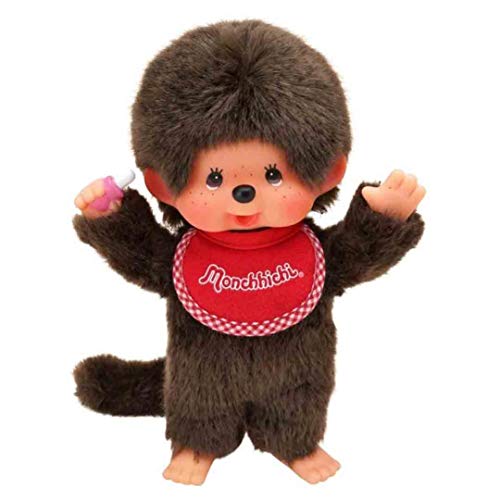 Sekiguchi Sekiguchi-255177 255177-Originale Ragazzo Monchhichi, in Peluche, Bavaglino Rosso e Bianco, Circa 20 cm, Colore Marrone, 0, 255177