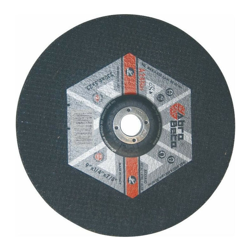 Mola di taglio 230x3,2x22 Mola di taglio 230x3,2x22 La gamma di dischi da taglio ABRA BETA per macchine portatili e stazionarie offre prestazioni ottimali negli ambienti di lavoro più esigenti. Mola da taglio per acciai normali e medi, leghe e ghisa Sezioni medio-grandi con potenti macchine portatili (2400W). Sezioni medio-fini con smerigliatrici a bassa potenza (1800-2000W) Alta velocità di taglio Buona durata. Dati tecnici Dimensioni: Ø 230 x 3,2 x 22 mm Velocità a vuoto giri/min: 6600 I vantaggi del prodotto Prestazioni di taglio costanti Buona durata di vita Buon rapporto prezzo/prestazioni Marchio: ABRA BETA