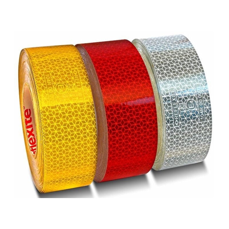 Nastro adesivo retroriflettente bianco in rotoli da 50 M Nastro adesivo retroriflettente bianco in rotoli da 50 M Rotolo di 50 m Colore: Bianco Larghezza 50 mm Decreto standard ECE UN 104