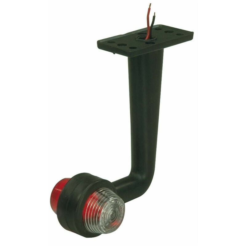 Luce d'ingombro piegata bicolore 135X175 mm Base in gomma rinforzata con metallo Facilmente intercambiabile Lampadine non incluse Venduto singolarmente Certificazione E9 Luce d'ingombro piegata bicolore 135X175 mm Base in gomma rinforzata con metallo Facilmente intercambiabile Colore: Rosso e bianco Distanza di montaggio: 76 mm Lampadine non incluse: 12V 5W (BA15S) o 24V 5W (BA15S) Cablaggio: 2 x 0,75 mm² Certificazione E9