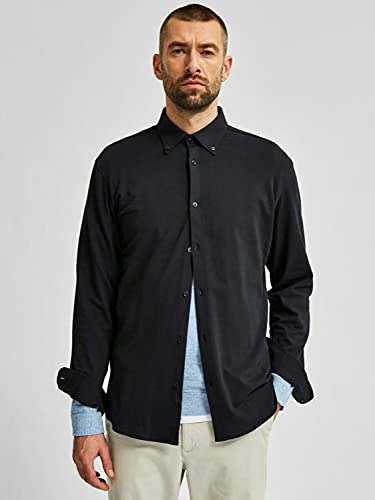 SELECTED HOMME BLACK Slhslimoliver-Knit-Maglietta Flex LS B Camicia, Nero, M Uomo