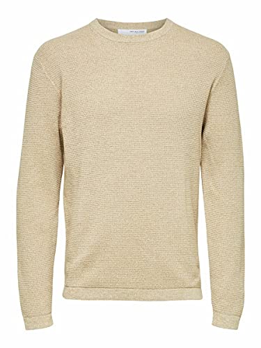 SELECTED HOMME GREY Slhrocks LS Knit Crew Neck G Noos Maglione, Kelp/Dettagli: Bone White Twist, XL Uomo
