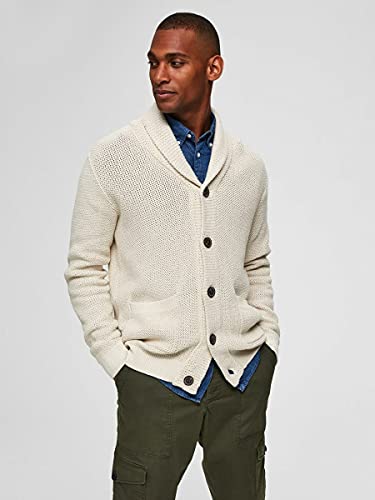 SELECTED HOMME Male Cardigan collo sciallato, Bone White 2, M