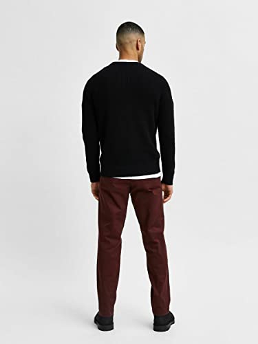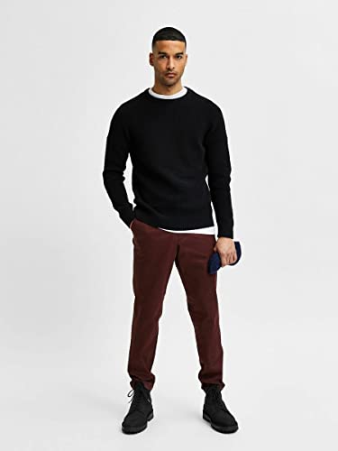 SELECTED HOMME WHITE Slhirven LS Knit Crew W Noos Maglione, Schwarz, M Uomo