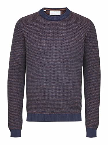 SELECTED HOMME WHITE Slhwes LS Knit Crew Neck W Noos Maglione, Blu Navy/Dettaglio: Monks Robe, XXL Uomo