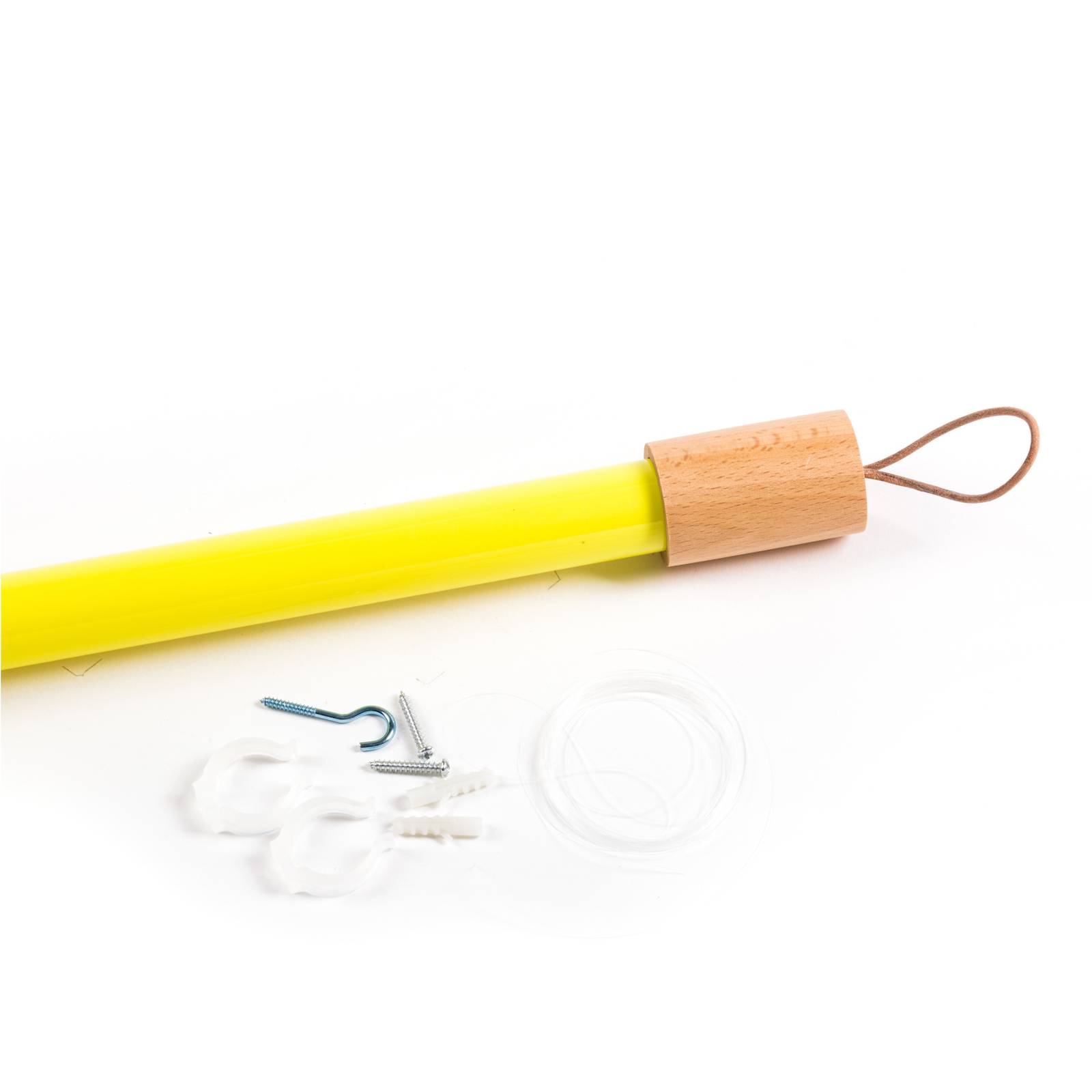 Lampada da terra tubolare a LED Linea con vetro colorato e terminali in legno chiaroSe montata a parete, appesa o con base in legno opzionale (vedi accessori) come lampada da terra, Linea può essere utilizzata in modo molto flessibile come fonte di luce a tutto tondo. Inoltre, grazie al cavo e all'interruttore a innesto, non è necessario un cablaggio fisso. Le testate in legno chiaro conferiscono a Linea un tocco di naturalezza. Questa versione di Linea è il risultato della collaborazione tra Alessandro Zambelli e Selab. Lo studio italiano di design creativo è stato fondato da Stefano Seletti. Seletti è anche a capo dell'omonimo marchio di prodotti originali, innovativi e stravaganti per l'arredamento, l'illuminazione, la decorazione e l'arte.