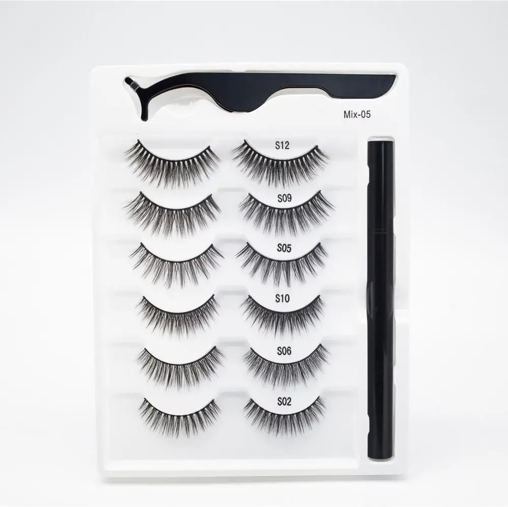 Self Adhesive Lashes 6 Pairs/Set Magnetic False Eyelashes Wholesale Natural Cosmetics Lashes Accessories Tweezers Eyeliner