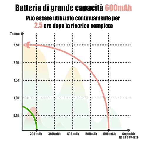 【Tipo Ricaricabile Aggiornato】 600 mAh - La batteria aggiornata ad alta capacità non ha più bisogno di essere ricaricata frequentemente. Ha una funzione di protezione della carica per evitare il sovraccarico. Si illumina in "rosso" durante la ricarica e si illumina in "verde" quando è completamente carico.