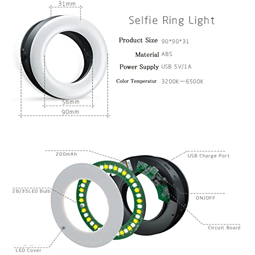 Selfie Ring Light, Selfie Luce ad Anello Lampada Ricaricabile ad Anello a Clip con 40 Led Luce per Selfie Dimmerabile Selfie Ring Light Mini per Telefono, Tablet