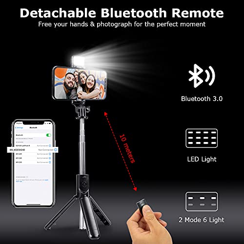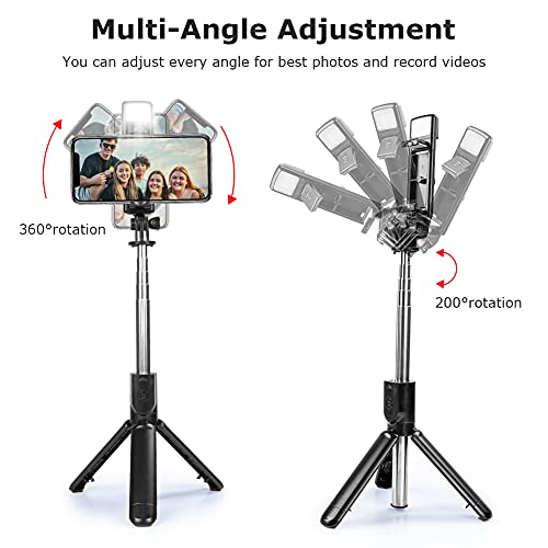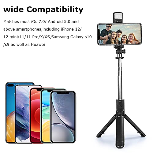 Selfie Stick estensibile con telecomando wireless e luce di riempimento,supporto per telefono treppiede per la registrazione video dal vivo compatibile con iPhone 13 Pro Max/12 Pro Max/11,Galaxy S21