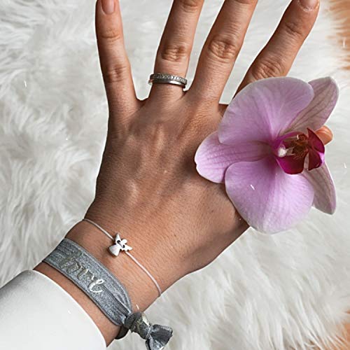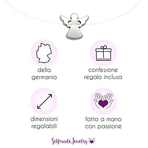 Selfmade Jewelry Bracciale Con Angelo Custode - Angelo Custode In Argento Su Un Cinturino In Tessuto Bianco Come Portafortuna (Argento - Bianco)(Taglia Regolabile)