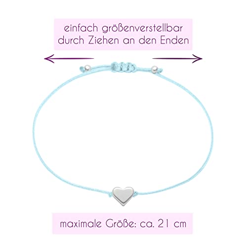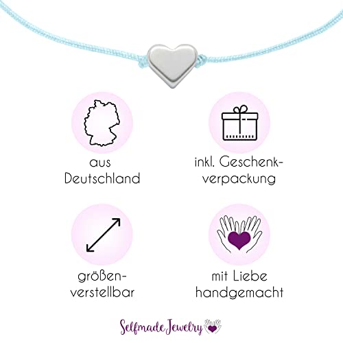 Selfmade Jewelry Bracciale Cuore Argento per Donna, Bracciali Macrame Fatti a Mano Con Cuori Inclusa Confezione Regalo (Argento - Azzurro)(taglia regolabile)