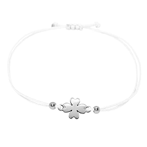 Selfmade Jewelry Bracciale Trifoglio Argento per donna, Bracciale Portafortuna con Trifoglio Fatto a Mano Regolabile in Misura Inclusa Confezione Regalo (Argento - Bianco)(Moderno)