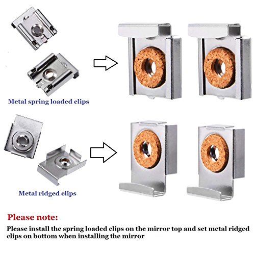 【Facile da installare】- Installa un paio di fermagli metallici incassati in modo uniforme sul fondo e posiziona lo specchio su di essi per contrassegnare i fermagli a molla, rimuovi lo specchio e fora e fissa il fermaglio superiore in metallo