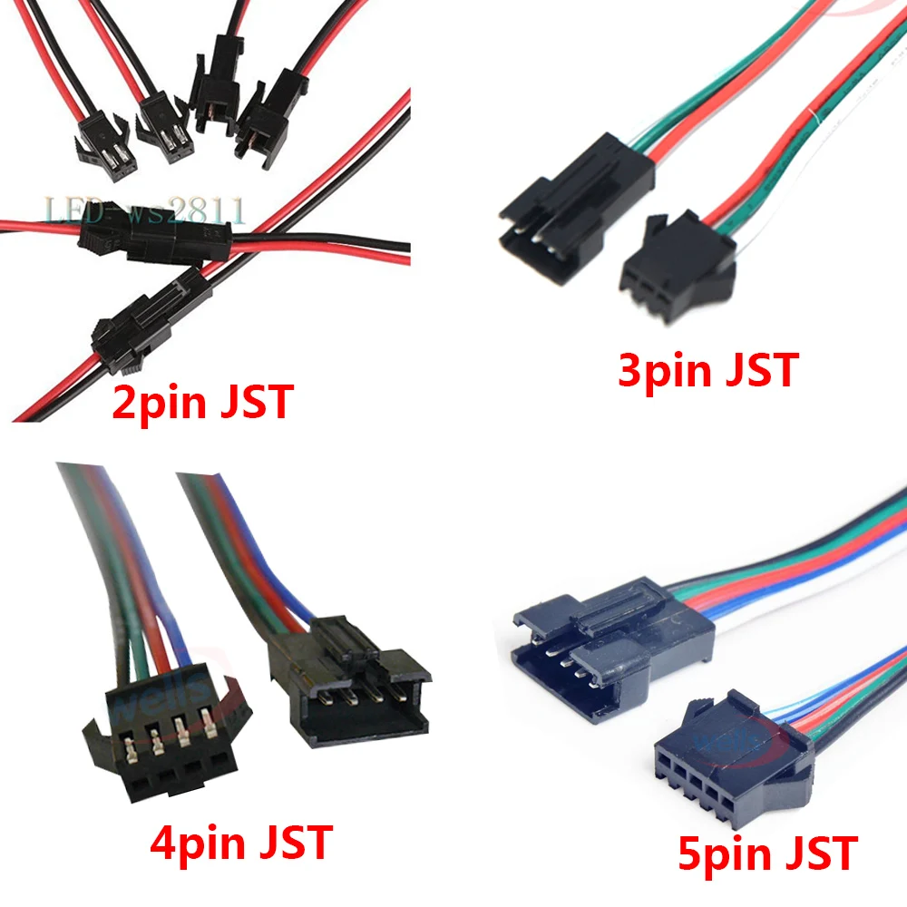 Hot sell 5-100pairs 2 3 4 5 pin 2 x 15cm JST Connector Male/female connector for Lamp Driver CCTV led strip light