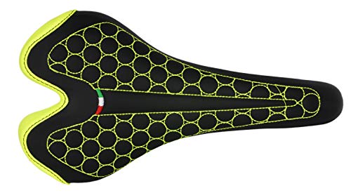 Sella FatBike Montegrappa per Bicicletta MTB Trekking Unisex MOD. SM 4010 Made in Italy. Colore Giallo