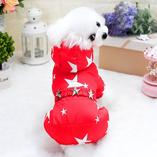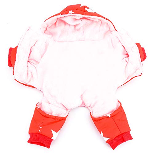 SELMAI Snowsuit per Cani di Piccola Taglia Foderato in Pile Cintura con Cappuccio Tuta Pantaloni a Quattro Zampe Cappotti Invernali Cagnolino Chihuahua Abiti Rosso S