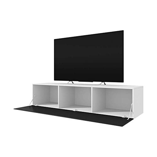 Selsey LANA - Mobile TV Sospeso/Luci LED Blu/Bianco Opaco con Frontale Nero Lucido / 160 cm