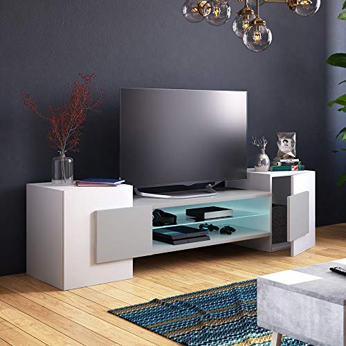 Selsey Mobile per TV, Blanc Mat/Gris Brillant, Sans LED