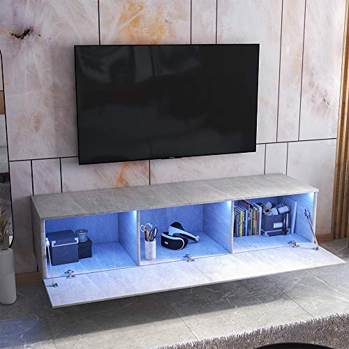 Selsey SKYLARA - Mobile TV in piedi/sospeso - 180 cm - cemento - con illuminazione LED