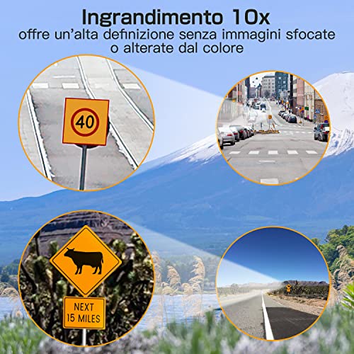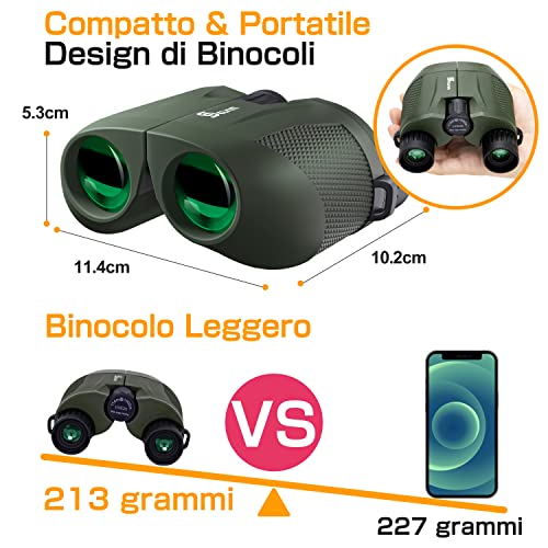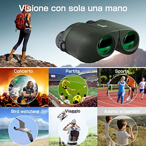 【Binocolo 10 × 25 HD】: l'ingrandimento 10x e l'obiettivo da 25 mm offrono immagini più luminose e chiare e una visione più confortevole. Binocolo perfetto per birdwatching, concerti, sport, viaggi ed escursioni.