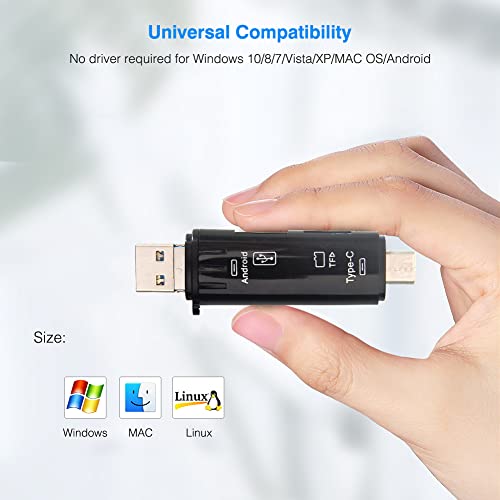 Seminer Adattatore USB Micro SD Card, 5-in-1 Lettore di Memoria Portatile USB C/Micro/USB 2.0 Adattatore USB OTG per Scheda Micro SD Compatibile per MacBook Computer Telefono Android