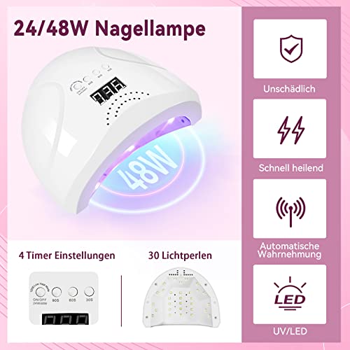 【48W Lampada UV LED per Unghie】La lampada per unghie Phoenixy 48W UV LED è a rilevamento automatico con schermo digitale, 4 impostazioni di timer 30s/60s/90s/ (modello a basso calore 120s). Il tempo di polimerizzazione è facile da vedere e da scegliere. Con 30 perle di lampada è possibile polimerizzare rapidamente quasi tutti i tipi di gel. Sicura e non dannosa per unghie, pelle e occhi.