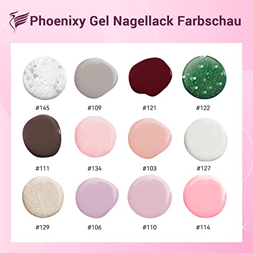 Kit Semipermanente Unghie Completo, Phoenixy 12 Colori Gel Unghie con 48W Lampada LED Kit Unghie Gel Completo Base Top Coat Regalo per le Donne