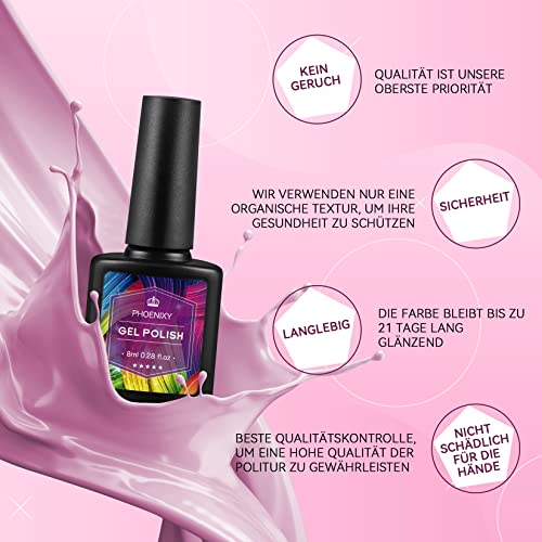 【Delicato e Duraturo】Phoenixy semipermanente unghie è estratto da una resina naturale, che è naturale e innocua, senza bolle d'aria e impurità. Se si segue la procedura corretta, l'effetto può durare più di 21 giorni. Adatto per unghie naturali e unghie artificiali di vari materiali.