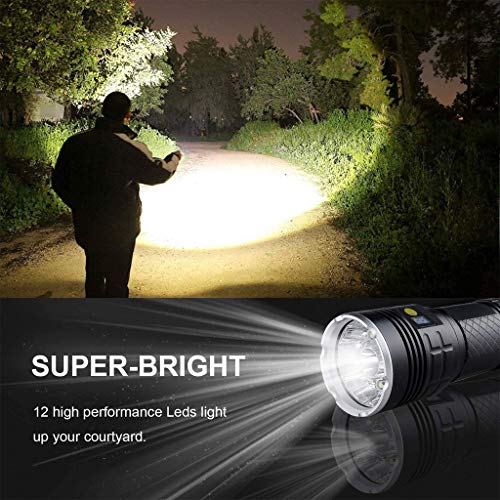 Semlos LED taschenlampe 10000 Lumen, 12xLEDs taschenlampe Extrem Hell, USB Wiederaufladbare, 4 Modi, Power-Display-Funktion(Schwarz)