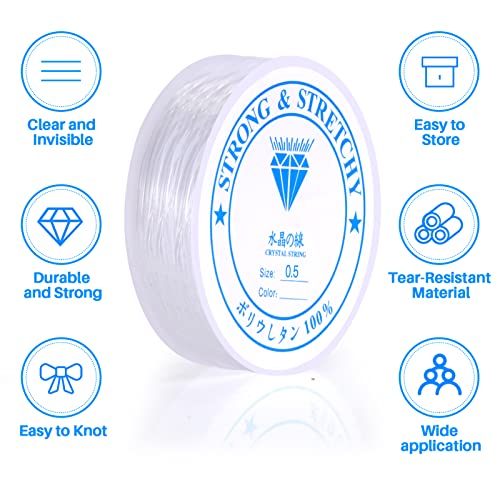 Semoss 3 Rotolo 0.5mm Filo Elastico Trasparente per Braccialetti Resistente,Cordino Elastico Nylon per Fare Gioielli,Collane,Fili di Perline