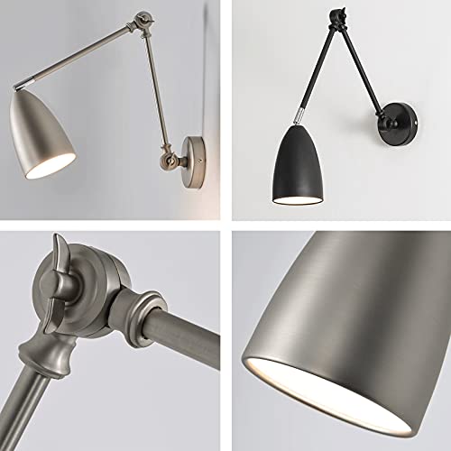 Semplice ed elegante Lampada da parete da comodino Braccio oscillante orientabile Doppio braccio lungo Lampada da parete in metallo a testa singola Lampada da parete for studio telescopica da lettura
