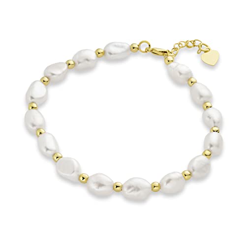 Semplice sposa autentica bianco d'acqua dolce coltivato barocco barocco perla bracciale a mano per donne adolescenti placcato oro 18K con distanziali piccolo polso 6,5 pollici 2 "estensione regolabile