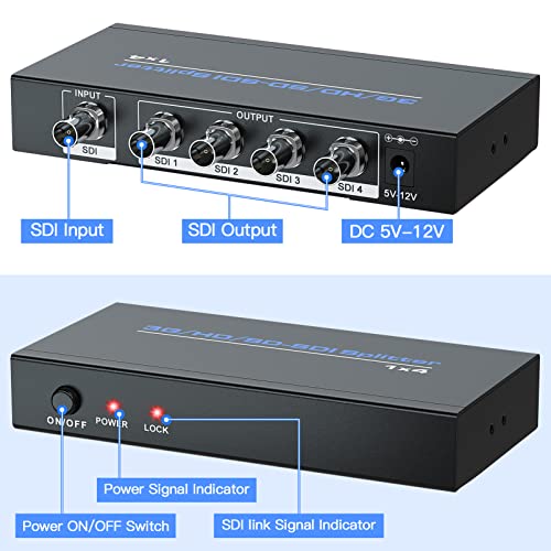 SEMZHENG SDI Splitter 1x4, 3G-SDI/HD-SDI/SD-SDI Distributore, SDI 1 in 4 Out