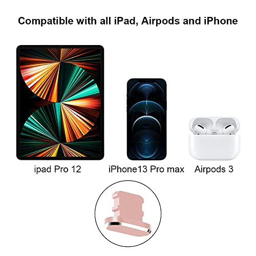 Senbos 4 Tappi Antipolvere Compatibili con iPhone 14 PRO Max, Tappi Antipolvere in Metallo Protezioni Porta Tappo Antipolvere per iPhone 13, 12, 11, X, XS, XR, 8, 7Plus, iPad e Airpods (Oro Rosa)