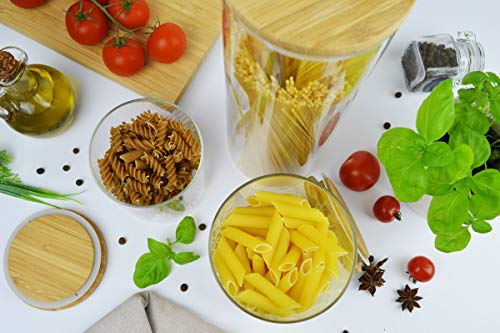 Barattoli in vetro borosilicato con coperchio in bambù, ideale per conservare: Caffè, riso, farina, caramelle, ecc.