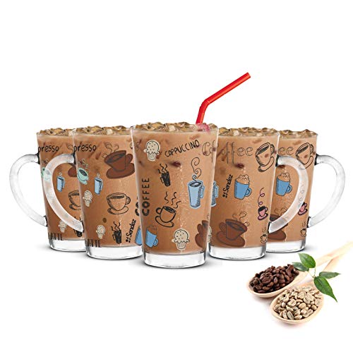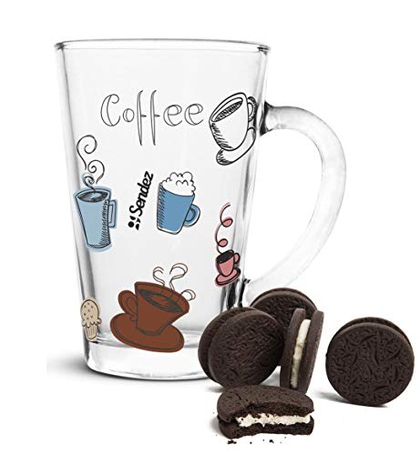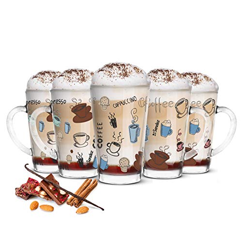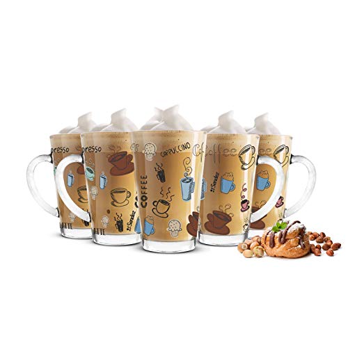 Sendez - 6 bicchieri da latte macchiato, 300 ml, con stampa colorata di caffè