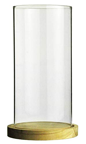 Cilindro in vetro borosilicato con piatto in legno, altezza totale: circa 21 cm