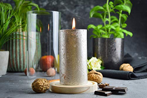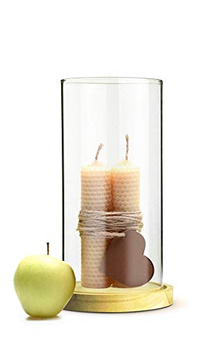 Sendez - Portacandela antivento a cilindro in vetro con piatto in legno, decorazione da tavolo