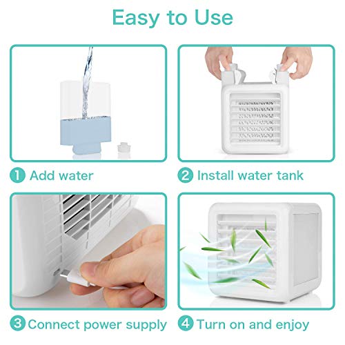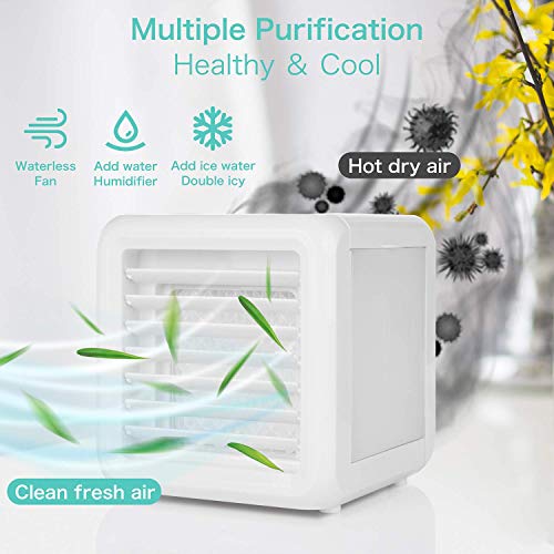 Sendowtek Ventilatore Aria Condizionata Portatile, Mini 3 in 1 Refrigeratore Personale e Umidificatore d'Aria con Serbatoio d'Acqua Estraibile, Ventilatore da Tavolo con 7 Luci a LED